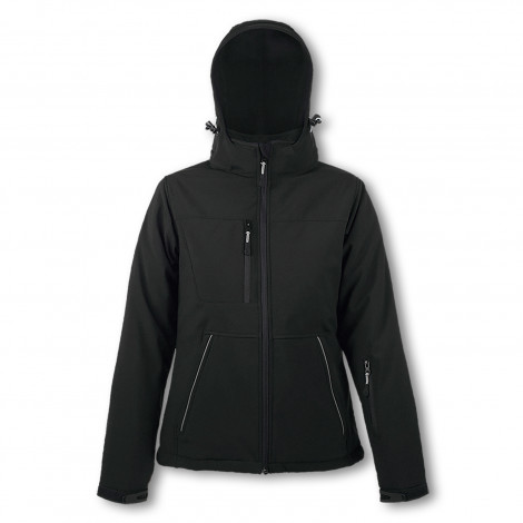 Premium 340gsm women\’s long sleeve jacket manufactured from 94 percent polyester with six percent elastane added for stretch comfort. This layer is windproof, breathable, and has a waterproof rating of 8000mm (waterproof in light conditions). It has 160gsm internal polyester padding and is lined with polyester taffeta which provides triple-layer protection from the elements. Rock has two large vertical zippered side pockets which double as hand warmers, a vertical zippered chest pocket, a large zippered internal pocket with an opening for headphones, and an internal mesh slip pocket. It has a longer back panel and an adjustable elastic waist closure with a locking toggle for additional warmth. Other features include adjustable Velcro cuff closures, inner stretch cuffs, a fully adjustable and removable fleece-lined hood with a peak, a zippered pocket on the left sleeve, and reflective piping on the side pockets and the back for added visibility. Rock is a European fit and is available in six sizes.