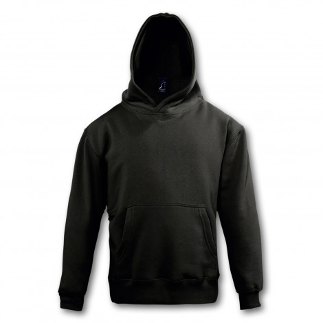Versatile 280gsm fleece-lined kid\’s hooded sweatshirt which is manufactured from a 50/50 blend of ring-spun cotton and polyester with ribbed elastane on the hem and cuffs. It has set in sleeves and a large kangaroo pocket on the front. The brushed fleece lining gives the garment a soft and cosy feel while adding extra warmth. It is a European fit and is available in five sizes.